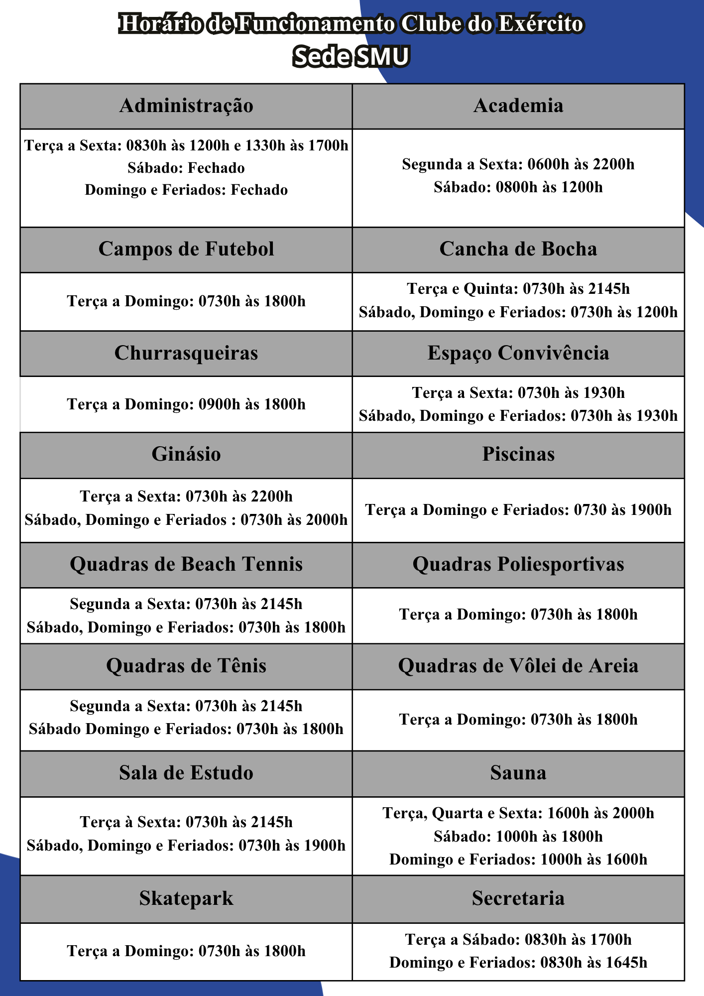 HORÁRIO DE FUNCIONAMENTO