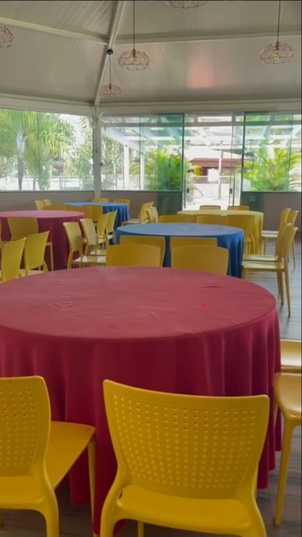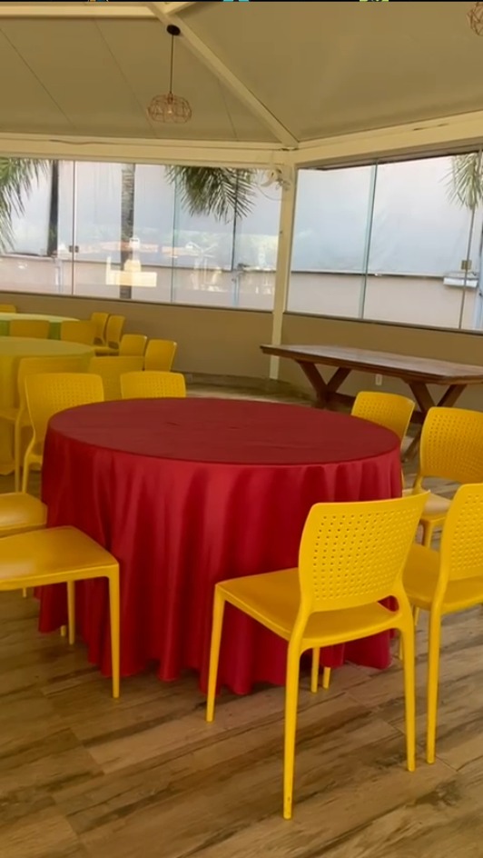 Obs: As toalhas dispostas nas mesas são meramente ilustrativas, ao alugar a churrasqueira não são disponibilizadas toalhas.