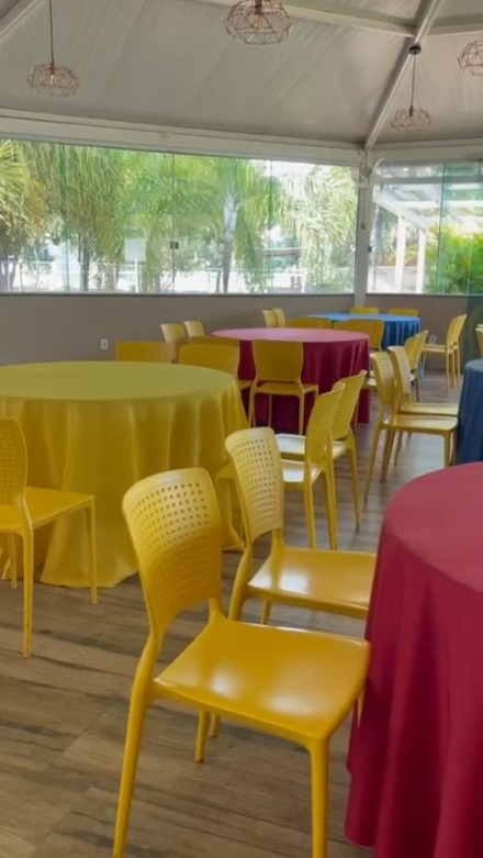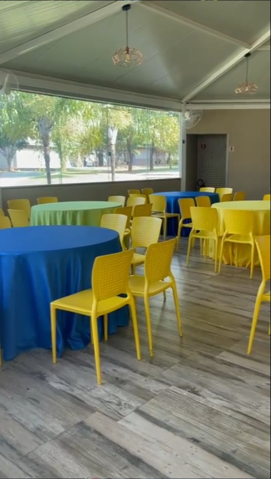 Obs: As toalhas dispostas nas mesas são meramente ilustrativas, ao alugar a churrasqueira não são disponibilizadas toalhas.